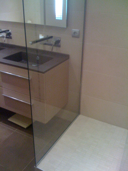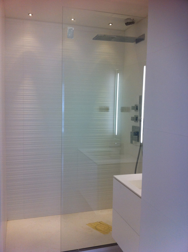 - Pare douche sur mesure en verre trempé clair ou anti-calcaire ( Showerguard 2 garantie 10 ans ) : Fixation sur profilé en U chromé spécial douche et raidisseur de maintien ( Verre / Mur ), douche à l'Italienne